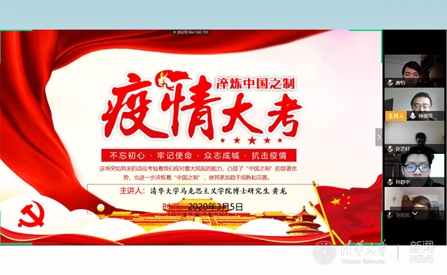 清华新闻网3月14日电 为深入贯彻习近平总书记关于新冠肺炎疫情防控的系列重要讲话精神,做好疫情期间学生思想政治工作,增强学生党员和积极分子对我国防疫政策的理解与认识,3月5日下午,清华大学学生马克思主义学习研究协会(TMS协会)党支部召开“统一思想,凝聚力量——抗击疫情下的中国力量”线上组织生活。党支部全体党员、预备党员和积极分子共24人参加本次组织生活。TMS协会党支部书记、协会会长坤福贤主持了本次活动。