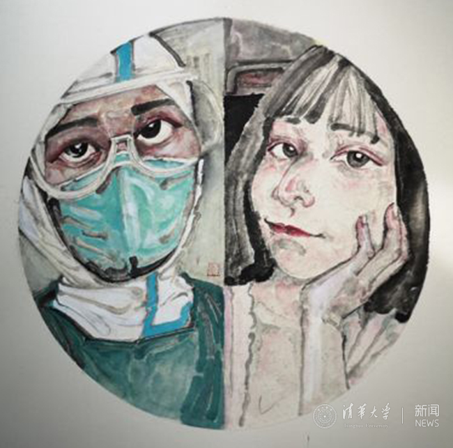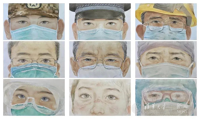 “这场战役中,最难忘的是你们的眼神。一双双坚定又充满希望的目光,让我们深深地感受到了伟大的社会使命感和面对疫情的无畏精神。”美术学院2017级硕士生杨秋璇的作品《交织的目光-守护者》,因其逼真笔触蕴含的深厚情感,早已传遍清华人的朋友圈。