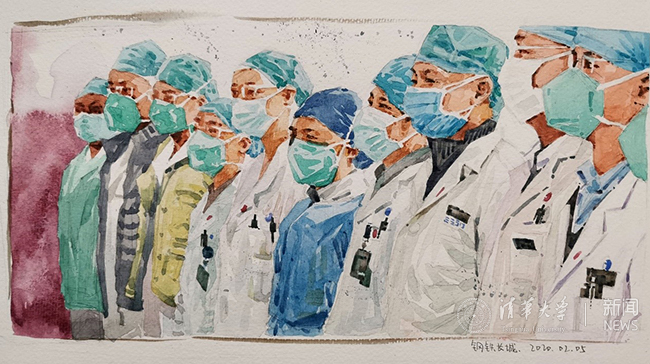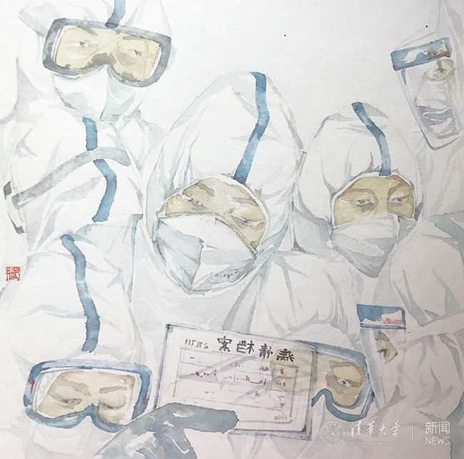 面对来势汹汹的新冠疫情,党和政府领导全国人民万众一心,医务工作者奋力救助,疫情防控形势不断向好,中国力量让华夏大地洒遍希望,中国精神让世界为之惊叹。而清华大学美术学院陈辉教授和他的学生们则把心中的感佩倾注笔端,用一幅幅生动的画作向“逆行者”致敬,为中国加油。