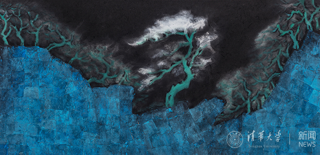 美术学院2017级博士生刘利平说:“松树在我们国家和民族代表着长青和顽强,可以战胜一切困难,因此我以松树为寓意,用蓝色代表希望,表达对抗以胜利的期待。”