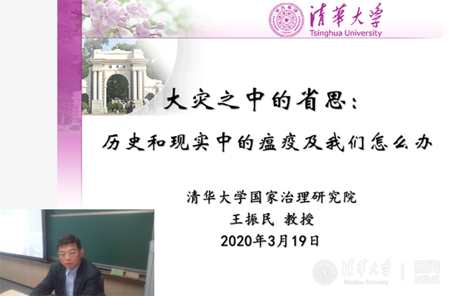 清华新闻网3月24日电(记者 方锶)3月19日下午,“唯真讲坛”第七讲通过荷塘雨课堂等举行。清华大学法学院教授、清华大学国家治理研究院院长王振民作了“大灾之中的三点省思:国家治理、民族文化与人类命运共同体”主题报告。此次报告同时作为校机关党委主办的“荷声讲坛”第十九讲,机关各党支部的党员同志和教职工在线聆听学习。