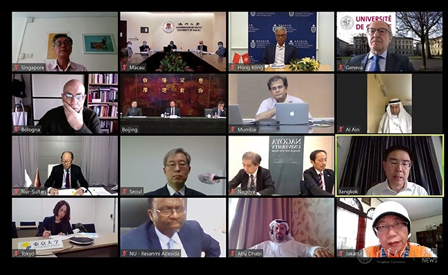 会上,泰国朱拉隆功大学校长班迪·厄阿鹏,香港科技大学校长史维,印度理工学院孟买分校校长苏巴西斯·乔杜里,新加坡国立大学校长陈永财,哈萨克斯坦纳扎尔巴耶夫大学校长胜茂夫,阿联酋大学代理校长兼教务长加里卜·阿勒哈德拉米,印度尼西亚大学秘书长、学校抗疫领导小组组长、亚太地区公共卫生学术联盟候任主席奥古斯丁·库苏马亚提(Agustin Kusumayati),瑞士日内瓦大学校长伊夫·弗吕克格尔,澳门大学校长宋永华,日本东京大学常务副校长白波濑佐和子,阿联酋哈利法大学常务副校长阿利夫·哈玛迪,日本名古屋大学副校长藤卷朗,韩国国立首尔大学副校长洪起玄,意大利博洛尼亚大学校长代表安东尼奥·菲奥里等先后发言,分享各高校疫情防控、在线教育、科研创新等方面的经验做法,表达加强务实合作、携手打赢疫情阻击战的强烈意愿。各大学纷纷表示感谢清华大学的组织工作,并希望以各种方式持续加强特殊时期的紧密沟通合作,共度时艰。参会嘉宾还就资源共享、增进高校间了解等话题进行了讨论。