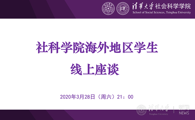 清华新闻网4月3日电 3月28日晚,清华大学社科学院海外学生线上座谈会召开。来自美国、意大利、比利时、韩国、日本、津巴布韦、马来西亚、新加坡等国家和地区的学生代表,以及社科学院派出交流的国内学生代表,共23名学生代表参加此次线上座谈会。社科学院院长彭凯平,院党委书记刘涛雄,副院长王天夫、赵可金,院党委副书记戎珂,学生工作组组长张开平,研究生工作组组长何晓斌、部分学生辅导员、德育助理等参加座谈会。会议由辅导员从晓主持。