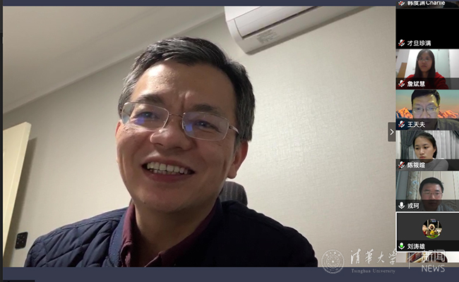 最后,刘涛雄作总结讲话,他代表学院全体教职工向大家表示问候,并指出三个要点。第一,大家的心在一块。学院永远是同学们的家,绝对不会让任何一个在海外的学生掉队。通过这次线上交流,大家的心更近了,希望加强进一步沟通。第二,信心很重要。只要有坚定的信心、科学的方法,一定可以战胜这次疫情。所以希望同学们保持信心,并按要求隔离,不去人群聚集的地方。第三,以清华的精神要求自己。除了模范遵守当地防疫规定,还可以力所能及地承担一定工作,为全球防疫作贡献,承担起社会责任,无愧社会情怀。同时在上好课、做好研究的前提下,利用宝贵的时间多看书,提升自己。