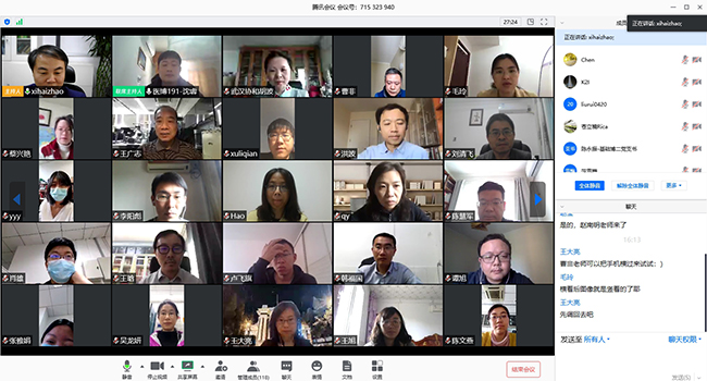 4月23日下午,医学院(药学院)教职工党支部通过腾讯会议平台开展了特色组织生活 “对话武汉抗疫先锋,思辨疫情危机应对”。本次活动特别邀请了华中科技大学协和医院神经内科主任胡波教授、副主任兼党支部书记曹非教授、副主任毛玲副教授三位嘉宾分享抗疫故事。