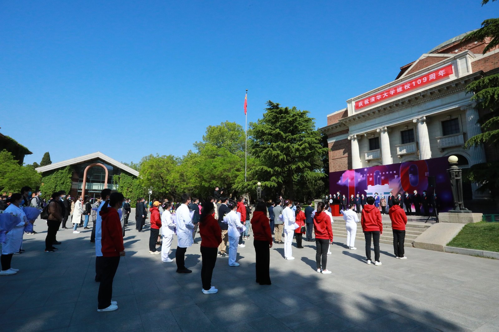 早上9时整,伴随徐徐春风,清华大学校庆日升旗仪式在云端开启。校长邱勇、校党委书记陈旭出席并为北京清华长庚医院支援武汉医疗队颁发纪念牌、献上鲜花。