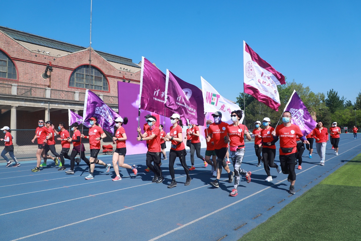 清华大学具有深厚的体育传统和“为祖国健康工作五十年”的精神传承。从2016年开始在校庆举行的长跑活动,今年继续由清华校友跑协牵头组织。为落实疫情防控的要求、保证人员数量和参与师生的身体健康,此次长跑分二大组进行接力,一组跑56圈,一组跑53圈。