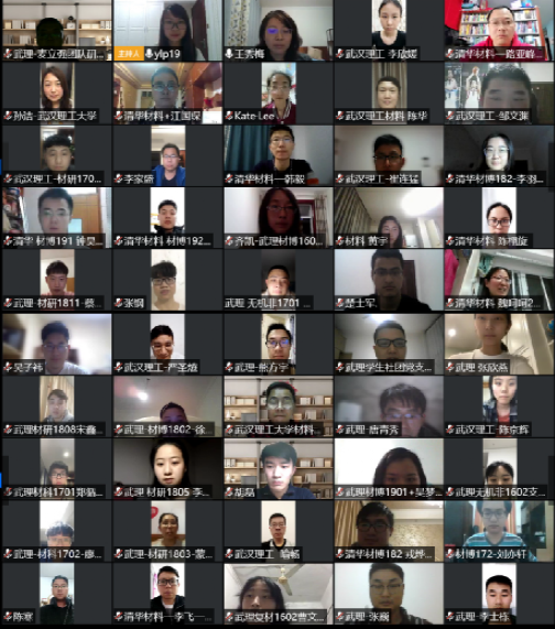 清华大学材料学院与武汉理工大学材料学院各个党支部、团支部的同学就党建和团建经验、理论学习和主题宣讲内容、疫情期间身边的抗疫故事等话题展开热烈交流与讨论。