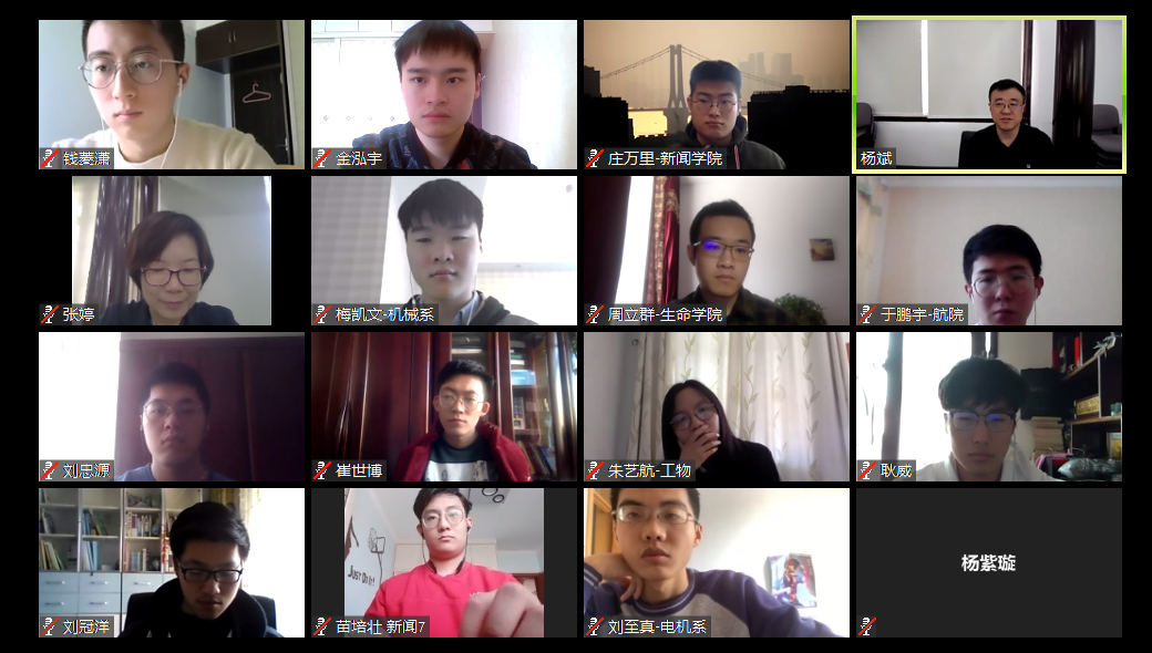 “因疫情而成长”是杨斌希望同学们思考的另一命题。“从以生活而教育的角度看,大学阶段遭遇到对全球有长期影响的疫情,怎么才能不‘浪费’这个正在进行时的‘生活’带给我们的特殊成长机遇,得以‘因疫情而成长’?”杨斌表示,学校在保证同学们的健康和安全的基础之上,维护良好有序的线上教学生活;与此同时,课外的学生生活、党团工作可能会在其中发挥课程教学难以替代的重要作用,帮助同学因疫情而成长。