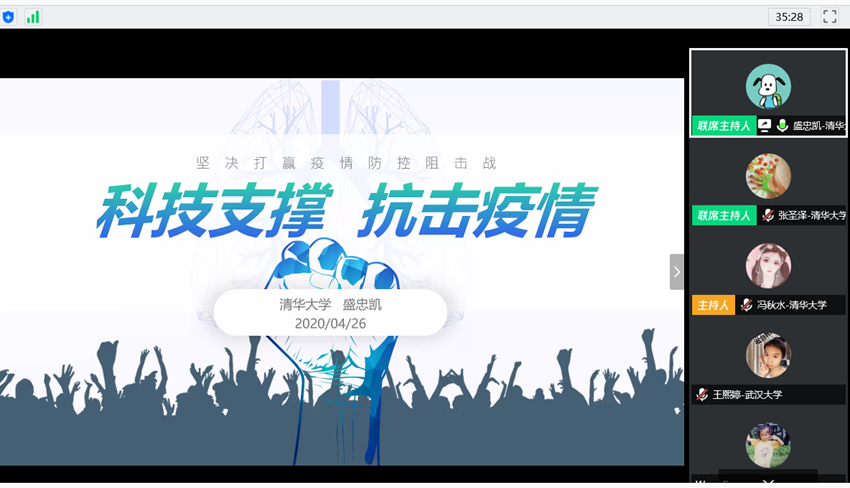 清华大学博士生讲师团团长盛忠凯介绍了高校青年联合抗疫志愿宣讲的整体情况。自3月22日举办首场高校联合抗疫志愿宣讲会以来,已开展12场联合宣讲,33所高校学生理论宣讲团的近80名讲师进行了宣讲,覆盖近20000名学子。各高校学生理论宣讲社团相继参与接力宣讲,充分展现了青年宣讲者的使命担当。
