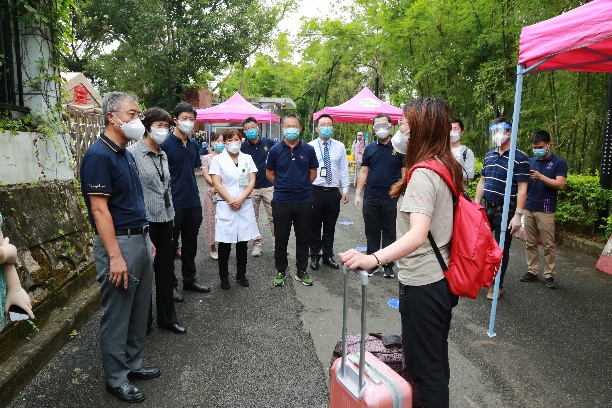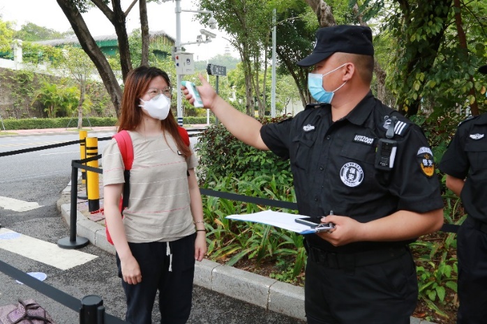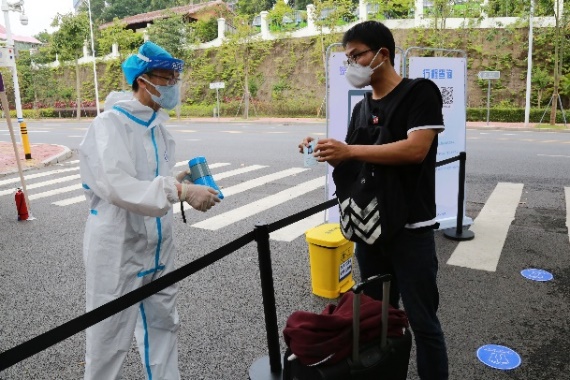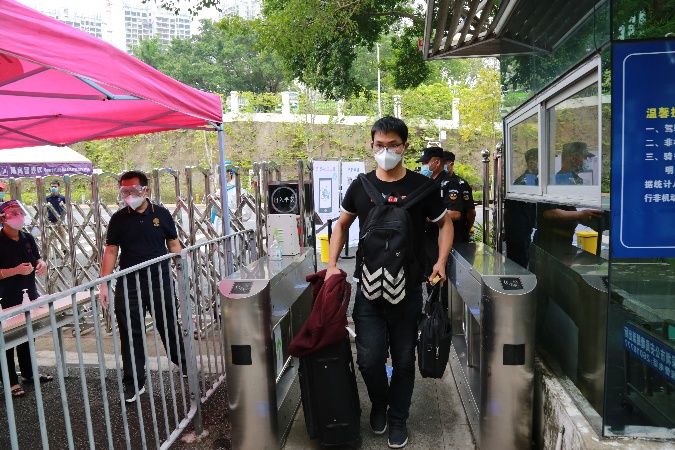 清华新闻网5月12日电(通讯员 黍离 马静宜 摄影 余飞慧 视频 丁超)根据深圳市教育局关于做好市内高校2020年春季学期开学准备工作的通知要求,结合拟毕业研究生及高年级研究生学习科研的实际需求,5月12日,清华大学深圳国际研究生院学生开始分期分批、有序错峰返校。今天,首批30余名湖北籍学生返回校园。上午10时许,执行院长高虹,院党委书记武晓峰、党委副书记关添等在小北门等候并迎接首批回校的学生。研工办、后勤办、社康中心、安保、物业等各部门的工作人员高效有序地协助学生完成“信息报备-体温检测-消毒-资料收集-防疫物品领取”等一系列返校流程。
