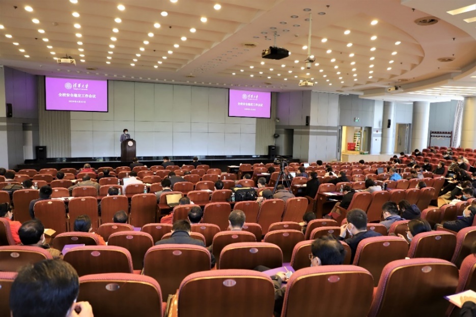 清华新闻网5月13日电 近日,清华大学召开全校安全稳定工作会议。由于新冠疫情防控的要求,今年全校安全稳定工作会议分两场召开。4月23日在主楼后厅举行第一场,校党委书记陈旭,校党委常委、副校长吉俊民,校党委副书记过勇、向波涛出席会议。会议由吉俊民主持,学校安全稳定工作领导小组成员、各单位主管安全稳定工作的负责人现场参会。5月9日,全校各单位安全管理干部和物业公司负责人在主楼后厅通过观看视频的方式参加第二场会议。