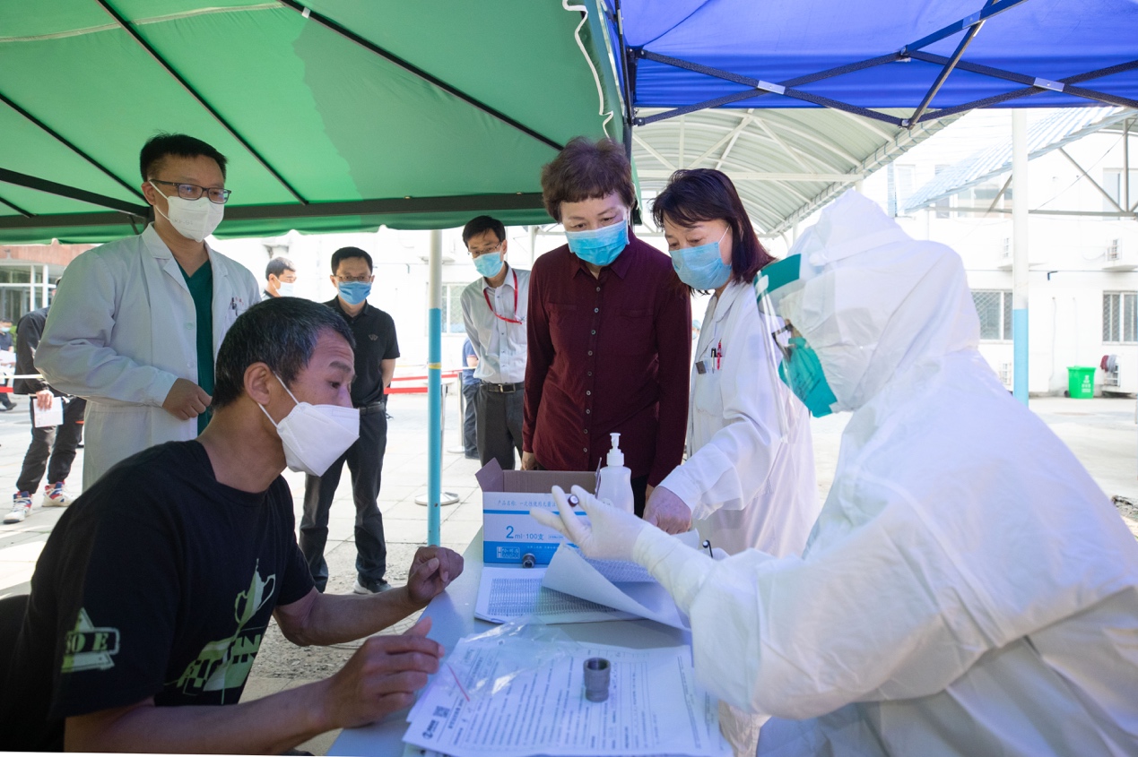 清华新闻网5月29日电(记者 张静 摄影 李派)为进一步做好校园疫情防控、完善学生返校准备工作和应急预案,迎接学生安全顺利返校,5月28日上午,校党委书记陈旭一行到校医院检查后勤职工集中核酸检测情况。