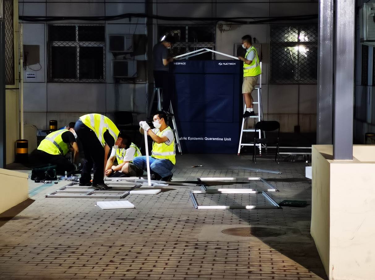 同方威视工作人员连夜安装调试防疫采样隔离舱