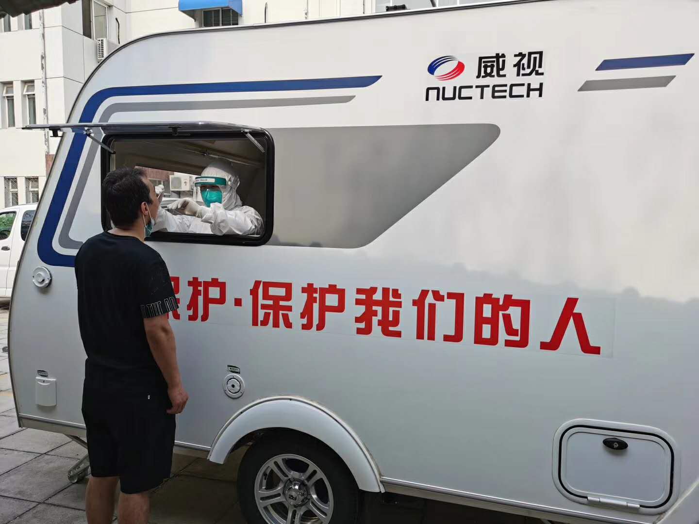防疫检测移动舱是同方威视响应北京市此次疫情防控需求而紧急研发的。项目组全体成员全力以赴、分秒必争,实行“人轮休、研发不停”的工作模式,仅用28小时成功研制出防疫检测移动舱,并以最快的速度运至清华大学校医院试用。