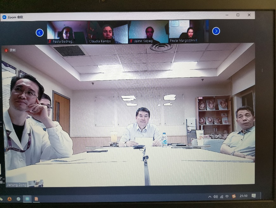 清华新闻网7月9日电 北京时间7月2日晚,清华大学临床医学院与智利天主教大学相聚“云端”,顺利召开了新冠肺炎联合攻关暨国际科研合作启动会。会议由清华大学临床医学院、精准医学研究院、北京清华长庚医院院长董家鸿院士召集,清华大学拉美中心主任、经济管理学院教授陈涛涛主持,智利天主教大学副校长佩德罗·布雄(Pedro Bouchon)教授以及智利天主教大学和清华大学的相关教师出席了会议。