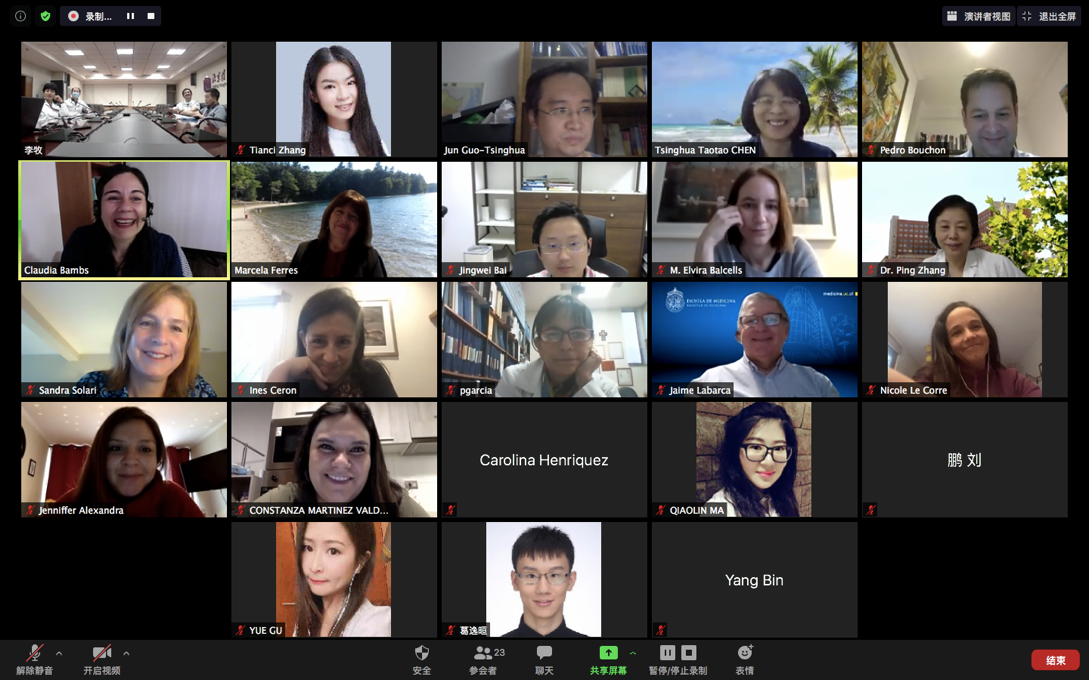 中智两国共有22名医学专家参加了会议,包括清华长庚医院副院长张萍、科研主任何作祥、临床检验科主任赵秀英,清华大学药学院博士生导师白净卫,智利天主教大学副校长佩德罗∙布雄(Pedro Bouchon)、公共卫生系主任克劳迪∙班布斯(Claudia Bambs)、传染病学专家马尔塞拉∙费雷士(Marcela Ferrés)等多个领域的资深学者和专家。会议由清华大学拉美中心主任陈涛涛主持。