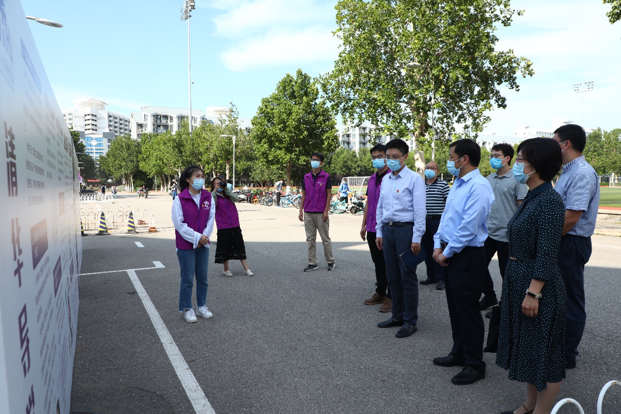 在清华大学研究生入学迎新点,李军会一行参观了学风及厉行节约展览区、迎新服务区和特色互动区,并听取了研究生迎新工作汇报。在学风及厉行节约展览区,“导学十问”主题展板通过十个问答,介绍了清华优良的导学传统、回应了同学们关心的导学问题。厉行节约海报墙则向全体研究生发出了粮食节约的倡议,引导形成珍惜粮食的校园风尚。迎新服务点主要为新生提供引导咨询、临时餐卡办理服务,而互动活动则巧妙融入了学风、环保、珍惜粮食等理念。李军会在志愿者同学的引导下参与到互动活动中,并与新生同学进行了交谈,对新生同学表示欢迎,高度评价了研究生会在符合疫情防控要求下开展的丰富而贴心的迎新服务。