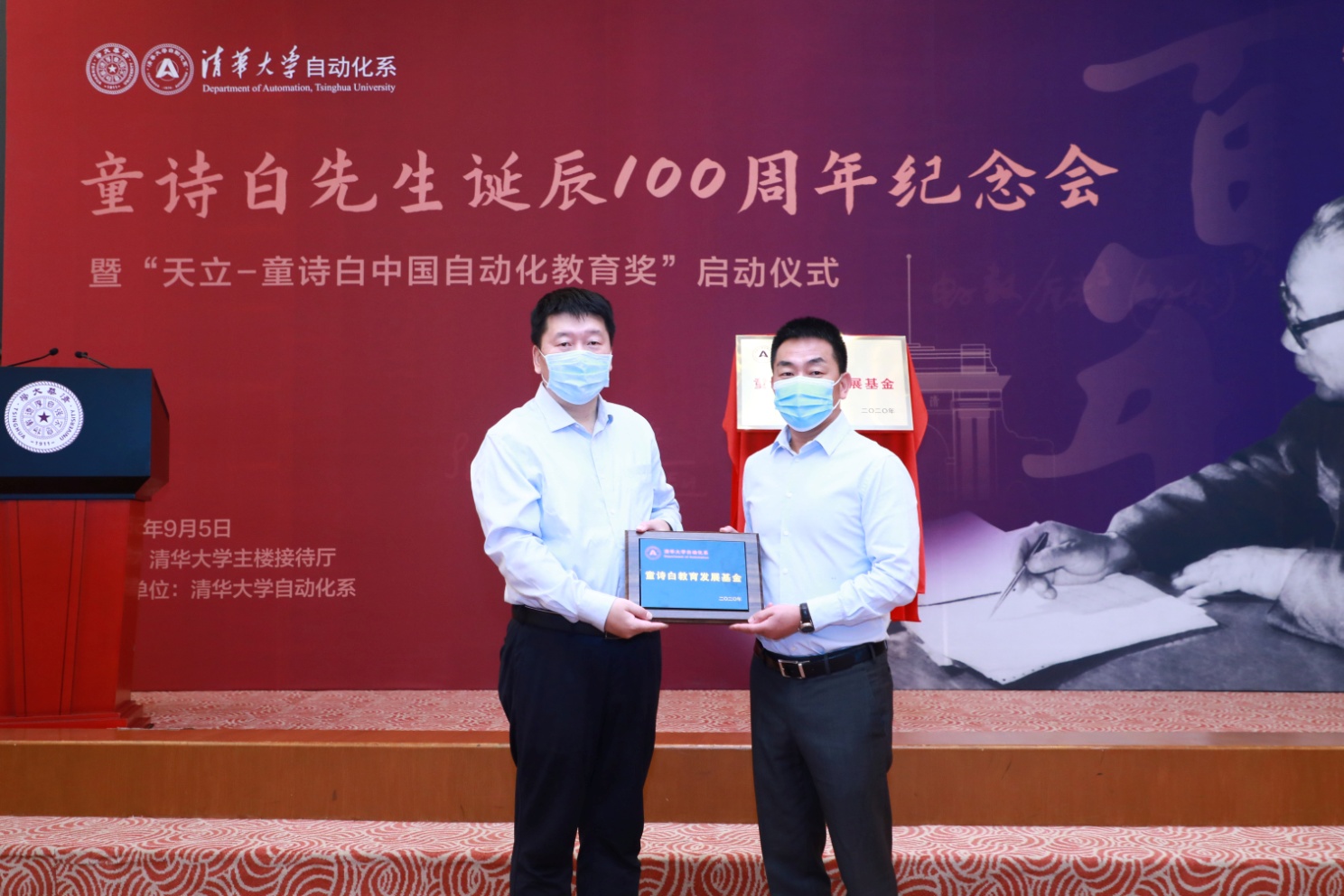 张涛介绍了童诗白先生的生平。他谈到,童诗白先生是中国著名的电子学科学家、电子技术学科和课程建设的主要奠基人。他淡泊名利,潜心教学和科研工作六十余年,为清华人才培养作出杰出贡献,堪称我辈楷模。他曾获得国家级教学成果特等奖和全国优秀教师称号,是国家有突出贡献的专家。2019年底,自动化系发起设立了“童诗白教育发展基金”,设立该基金的宗旨是弘扬童诗白先生不求闻达、诲人不倦的师德风范。该基金设立童诗白教育教学奖、奖学金和励学金,资助有益于学生综合素质拓展的各项活动,资助在科研方面有创造力、有潜力的自动化专业学生。2019年12月,由童先生学生、校友共同发起设立了“童诗白奖学金”项目。2020年6月,在系友们的帮助下,清华大学教育基金会与天立教育签署了“童诗白教育发展基金”捐赠协议,决定设立“天立-童诗白中国自动化教育奖”项目,面向全国高校自动化教育界,奖励在自动化本科专业和控制科学与工程学科的教学和育人工作中作出突出贡献的老师,以传承童诗白先生的教育理念和老一辈教学大师的优良传统。