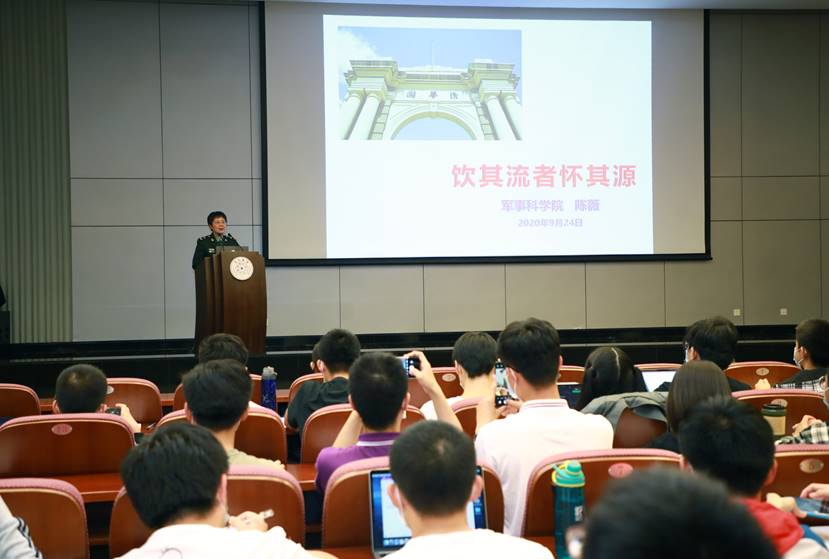 清华新闻网9月26日电(记者 冯哲盈 摄影 张晓峪 乔玥涵 曹文鹏)9月24日晚,清华大学化工系1988级研究生校友、“人民英雄”国家荣誉称号获得者、中国工程院院士、中国军事医学研究院研究员陈薇少将回到母校清华,在化工系朱兵教授负责的“化学工程与高分子科学导论”课上,以“饮其流者怀其源”为题作分享报告,这是她四年以来第三次受邀为选修该课的清华本科新生讲授专业导论课。来自化工系、探微书院、化学系、生命学院、环境学院、材料学院、药学院等36个院系的300余名大一同学现场聆听了分享报告。