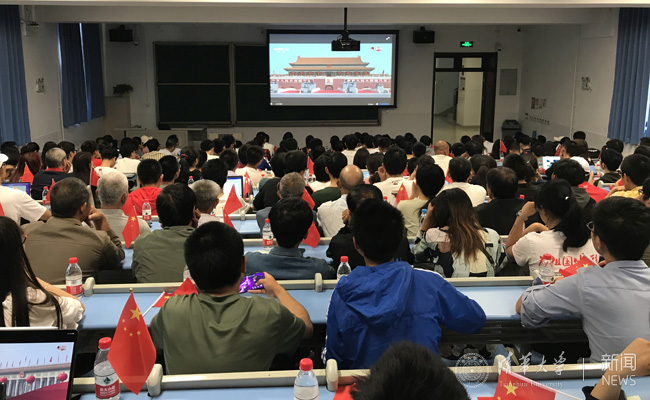 清华新闻网10月1日电 今天是“十一”国庆节,我们迎来了新中国成立70周年。今天,在首都北京隆重举行庆祝中华人民共和国成立70周年活动。阅兵式、群众游行吸引亿万中华儿女的目光。清华大学教师代表在现场观礼,广大清华师生也在大礼堂、教室、学院教学楼各处观看了庆典直播,共同祝福亲爱的祖国!