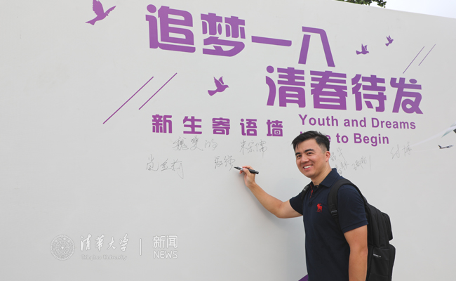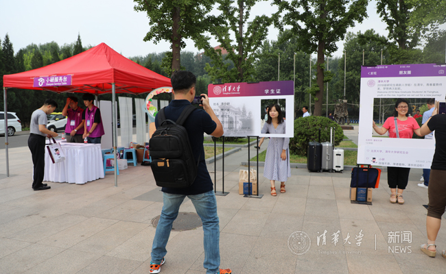综合体育馆内外,包括国际学生在内的多名研究生志愿者们在紧张而有序地忙碌着,引导新生有条不紊地完成报到手续。院系迎新点处,学长学姐正在仔细地为新同学讲解报到程序、注意事项和学科特色;新清华学堂的广场上,“清华有你,芳华共启”的立体标语引入注目,新生们纷纷与之合影,在清新靓丽的清华园里开启属于自己的芳华岁月。