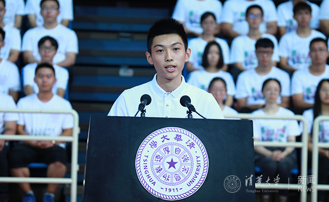 文理通识类陈开同学代表新生发言。他说,邱勇校长赠书《从一到无穷大》,让自己突破了以前狭隘的阅读领域,更深刻地理解到清华大学“文理渗透”的理念。清华教会我们懂得“一”的内涵。平凡的“一”是一切伟大事业的起点,寻常的“一”是追梦路途中必须守住的初心,从“一”开始,不忘初心,我们才能走向“无穷大”的未来。典礼在全场师生整齐的校歌声中结束。