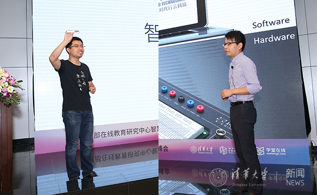 清华大学在线教育办公室王帅国(左)、美国迪芝伦科技大中华区总经理李甫成发言。