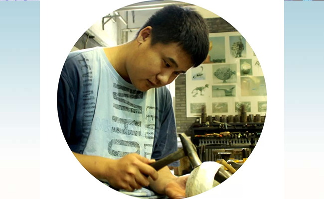 之后的三年时间里,我都会利用假期深入实践学习,在掌握工艺技法的同时,也深深感受到民间智慧的伟大。“通过手的控制与工具融为一体,随心所欲的进行创作”,这是云南手工艺人给我留下的深刻印象。其中通过最基本的锤目纹表现肌理,能够传达出一件作品最纯粹的材料美和工艺美,也给我的毕业设计很大的启发。