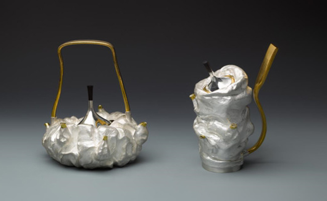 在当代金属艺术中,自然形如植物被不断的应用在金属艺术当中,并对其植物的特点或某一部分进行夸张,能够在实现装饰美感、达到实用目地的同时,传达出艺术家独特的思想理念。