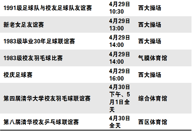 秩年、学术、体育、展览、校园开放、艺术、院系校友活动