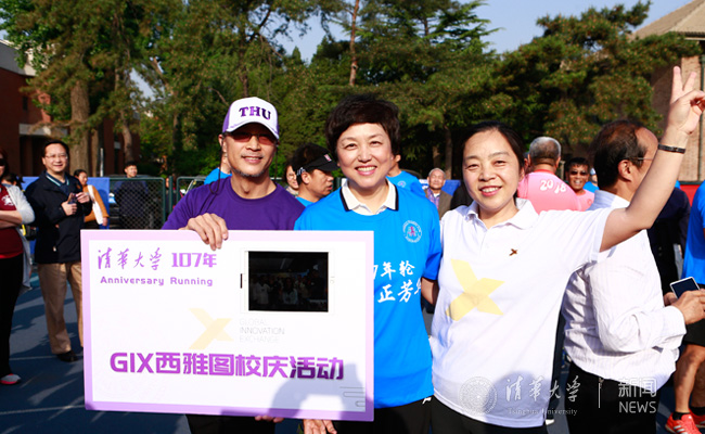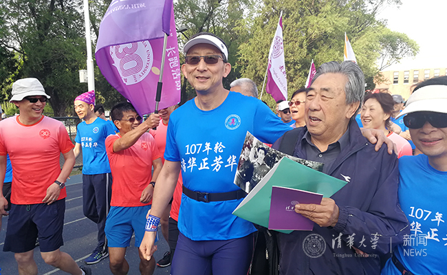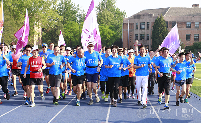 清华新闻网4月28日电(摄影 张帆 侯凯荣 胡子卉 )4月28日清晨,清华园春光明媚,西大操场热情似火。“母校诞辰107年,西操献礼107圈”长跑活动正式拉开帷幕,众多师生校友一起,完成了一场超过42公里的校庆献礼。清华大学党委书记陈旭也加入了奔跑队伍,带动和鼓励大家传承弘扬体育精神。