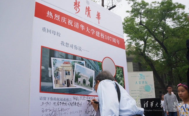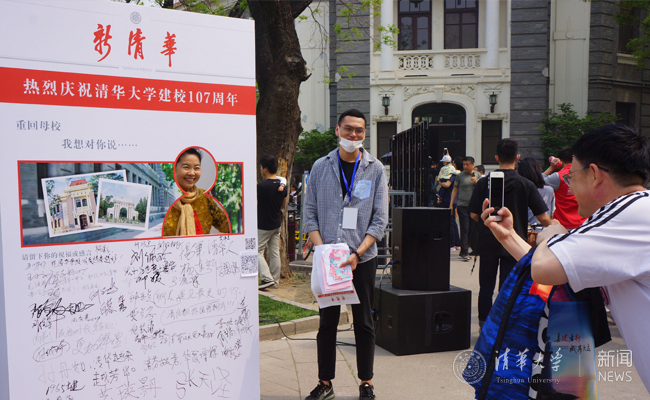 在清华大学建校107周年之际,校报《新清华》特别制作了头版展板,邀请返校校友“上头条”,写下对母校的深情寄语,并特别策划推出清华主页品牌栏目“清华映像”校庆系列明信片,为返校校友献上满满的祝福和心意。