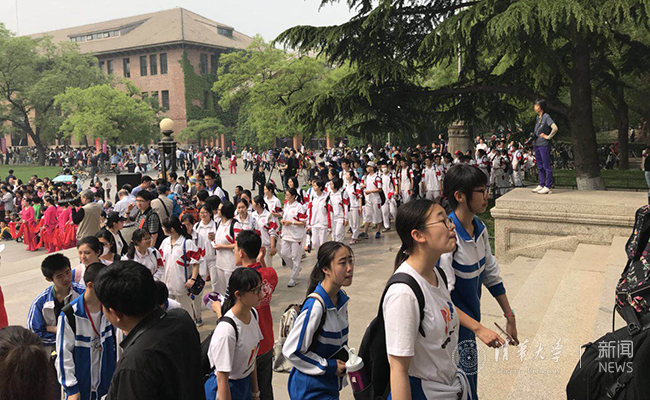 “芬芳年华,爱上清华”是今年中学生观礼活动的主题。由于中学生报名热情踊跃,今年,清华大学共发出了4000多张中学生邀请函。其中,包括人大附中、清华附中、衡水中学、中央民族大学附属中学等43所中学是组团参加各类活动,还有107名中学生凭借清华大学招生办公室微信公众号“清小华”邀请码自行入校参观。