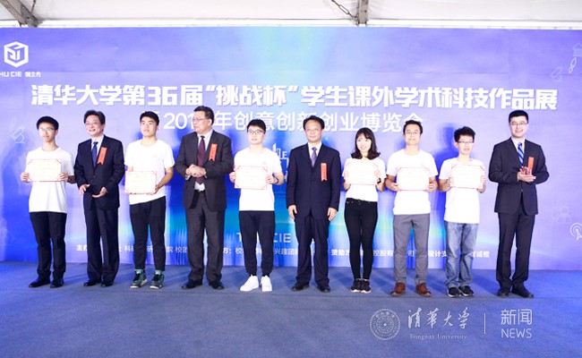 在清华大学学生科协主席夏江月对本届“挑战杯”竞赛作了基本情况的介绍后,副校长杨斌宣布了清华大学第36届“挑战杯”学生课外学术科技作品竞赛获奖名单、与清华大学创+种子基金入选团队名单。校领导们为“创+种子基金”项目授牌,并为“挑战杯”获奖选手和院系颁奖。