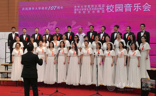 美好的歌声吸引了返校的校友,稚嫩的孩子席地而坐,白发苍苍的老学长轻声哼唱相和,演唱会结束时观众们一再热烈鼓掌,挽留合唱团再唱一曲。悠扬的歌声在新清华学堂前回荡,为正值芳华的清华献上美好祝福。