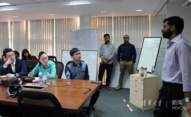 印度创业者向清华“启·创”学员介绍创业项目。