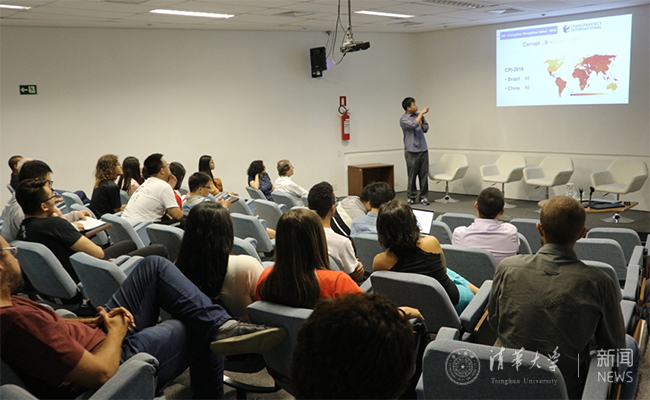 1月31日和2月2日,巴西实践支队分别前往中国三峡(巴西)有限公司、圣保罗州立数据分析研究中心和圣保罗大学政治学系开展参访活动。期间,清华大学公管学院研究生、博士生讲师团校级讲师李论围绕近年来中国反腐败的经验与从严治党的工作成效进行了三场题为“党的十八大以来中国反腐的实践与启示”(Anti-corruption Practice and Enlightenments in China:2012-2017)的英文宣讲。23名中国三峡有限公司巴西籍员工、10余名研究中心工作人员以及圣保罗大学社会学系、经济学系、政治学系以及计算机系30余名学生参与了宣讲活动。