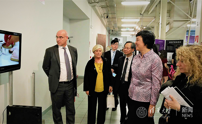 在内斯塔校长的陪同下,陈旭考察了米兰理工大学设计系和设计学院,深入了解了该校在设计领域的教学和科研发展情况。设计系主任西尔维亚·皮亚迪详细介绍了设计系和设计学院的情况。米兰理工的设计领域实现了学科交织,从哲学、工程、科技等各个领域,运用实验性、想象力、理论研究等方法激发学生的创造力。