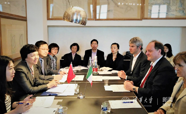 4月17日,陈旭访问了米兰理工大学,与校长费卢奇奥·内斯塔、副校长朱利亚诺·奥诺齐教授等举行会谈。会谈中,陈旭首先回顾了2015年第一次访问米兰理工大学时的情景。她表示,双方在双学位教育和科研合作方面三年来取得了实质性、突破性的进展。中意设计创新基地是两校未来合作的基石,希望在内斯塔校长的支持下双方能够继续携手、共同努力,为两国科研合作和人文交流作出积极贡献。