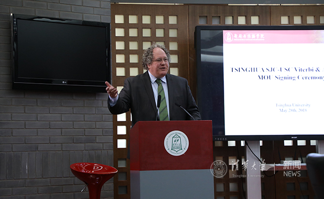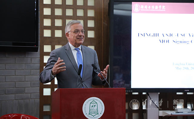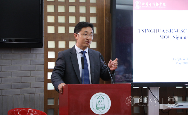 胡钰代表清华大学新闻学院介绍了与南加大进行跨院系、跨领域国际化培养的思路以及合作推进的情况。他说,这是面向学校建设世界一流大学目标,顺应数据时代要求的培养方式创新,未来将有利于清华新闻学院进一步保持其在新闻教育国际化发展中的领先优势,更好地培养融合媒体时代的跨界复合型人才。