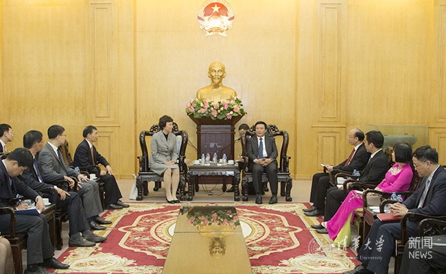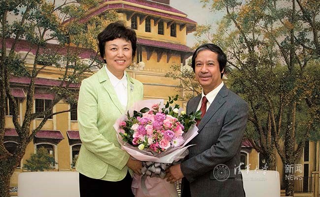会谈中,陈旭介绍了清华大学的历史沿革、办学理念以及当前的发展情况,对越南政府在推进高等教育发展方面取得的成就表示赞赏。她指出,中越两国教育部部长于2016年在人民大会堂共同签署了两国2016-2020年教育交流协议,清华大学愿意积极推动落实协议内容,整合相关资源,进一步深化中越教育合作。