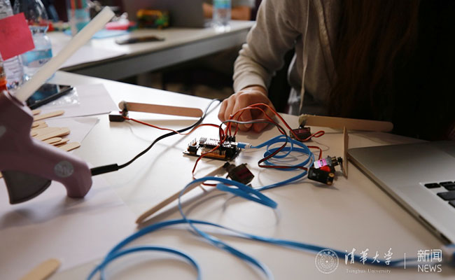 实践工坊以项目驱动的体验式教学为主导,借鉴了超限学习过程的教学模式。工作坊由清华大学基础工业训练中心技术创新实验室主任王德宇老师指导,带领同学们按照创新思维的方法,提出团队问题、寻求解决方案,并制作产品原型来深入调研用户需求。
