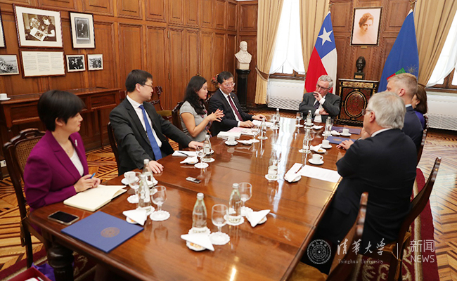 清华新闻网12月14日电(记者 吕婷 淑霞 通讯员 汪晖 摄影 李派)当地时间12月5日至12月7日,清华大学校长邱勇率团访问智利,推动清华大学与智利的教育合作与人文交流。其间,邱勇访问了智利总统府,与总统总顾问克里斯蒂安·拉罗莱特(Cristian Larroulet)和总统秘书长刚赛罗·布罗莫(Gonzalo Blumel)会谈。邱勇先后访问了智利发展大学、智利天主教大学、智利大学、安德烈斯贝洛大学,与各校校长会谈交流,推动清华大学与智利高校的教育合作。