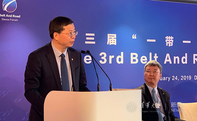 清华大学校长邱勇在致辞中指出,当今世界正处于百年未有之大变局,人类社会将拥抱一个崭新的时代。邱勇向来宾介绍了去年清华大学东南亚中心奠基和清华大学拉美中心成立等全球战略的最新进展,以及此次八所世界名校在达沃斯共同倡议发起“世界大学气候变化联盟”的相关情况。邱勇表示,为了更好地推动共建“一带一路”,清华大学发起创办“一带一路”达沃斯论坛,希望与大家一起把“一带一路”达沃斯论坛建设成为思想碰撞、共享智慧的盛宴。