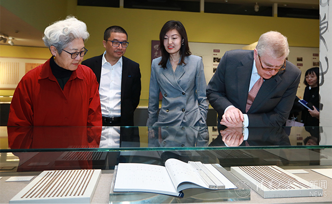 安德鲁在傅莹的陪同下参观清华大学艺术博物馆
