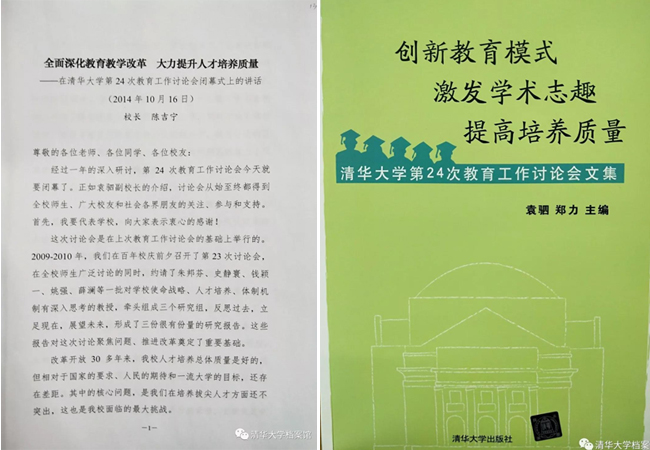 2013年9月26日—2014年10月16日,第24次教育工作讨论会。主题为“创新教育模式,激发学术志趣,提高培养质量”。在开幕式上,校长陈吉宁作动员讲话,校党委书记胡和平主持开幕式,副校长袁驷作工作报告。陈吉宁在动员讲话中指出,每4年召开一次教育工作讨论会是清华大学的优良传统,此次教育工作讨论会要坚持开放性的特色,以国际的视野和外部的视角看待我们的教育改革。此次教育工作讨论会分为“讨论、反思”和“调整、改革”两个阶段,要通过对人才培养优势不够明显、人才培养成效不够明显两个问题的深刻反思,和对我们面临的各项挑战的深层次讨论,实现全体师生认识的统一和观念的转变,进而采取切实的行动和举措解决教育改革中遇到的问题。