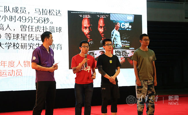 在颁奖环节,校党委武装部部长熊剑平为新生颁发了进入清华园后体育竞赛的第一个奖项:新生军训篮球赛优胜奖。同时还对获得定向越野优胜奖的同学进行表彰。