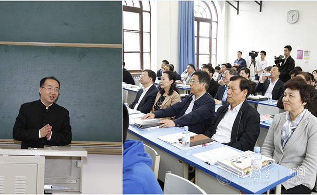 2017年4月,教育部部长陈宝生观摩冯务中老师应用雨课堂教学的思政课。