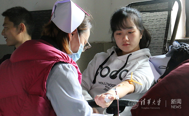 2017年10月21日,清华学子踊跃参加无偿献血。